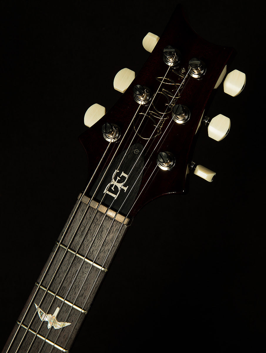 The PRS DGT is a beautiful workhorse. It comes equipped with many delightful features that make it stand out even among PRS's legendary lineup. David Grissom had two favorite PRS axes with atypical neck shapes (perhaps the result of an under- or over-zealous sander). He asked Paul to combine the best parts of both necks to form the DGT's neck profile, and the resulting shape is as buttery as can be. Upon that delightful neck carve, there are 22 jumbo frets to facilitate easy bending.