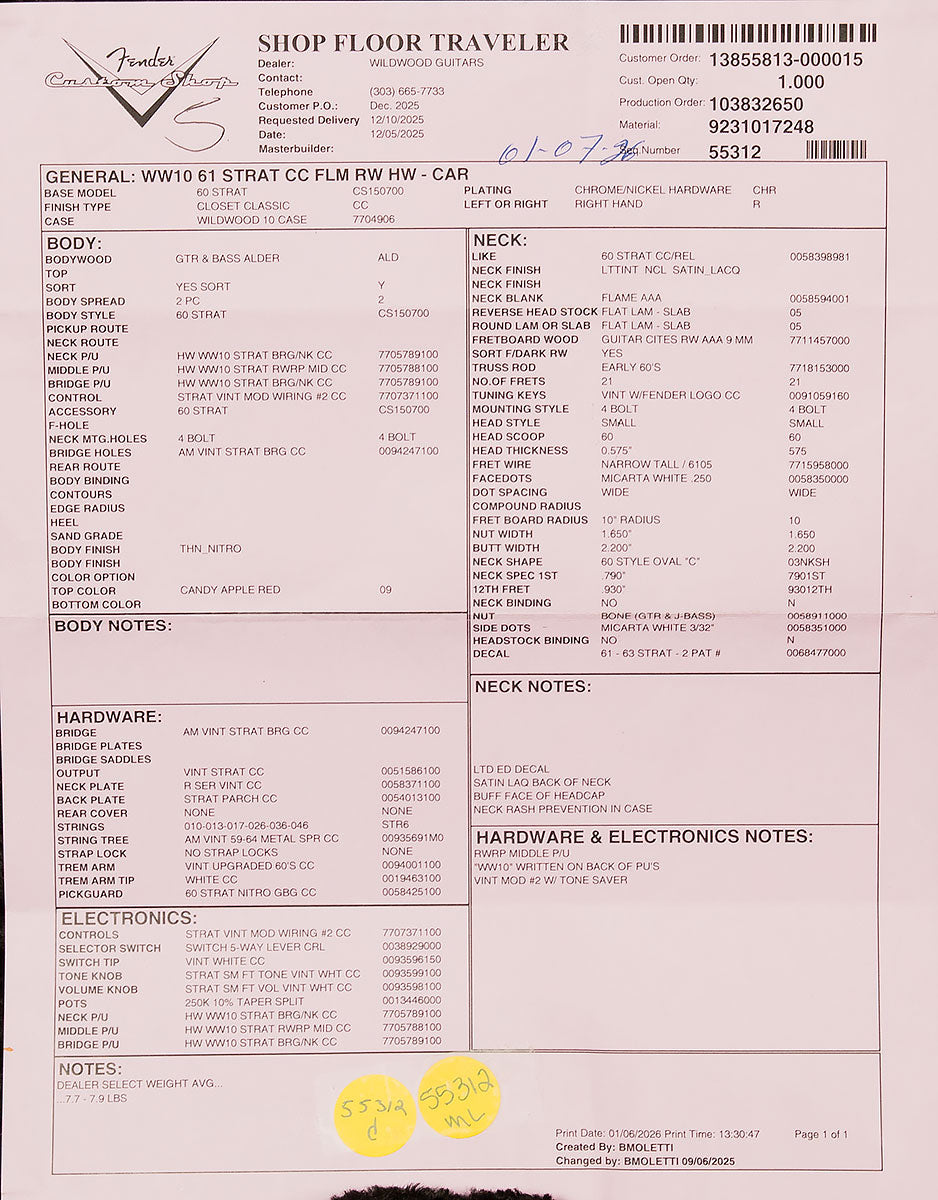 Dealer Select Wildwood 10 '61 Strat