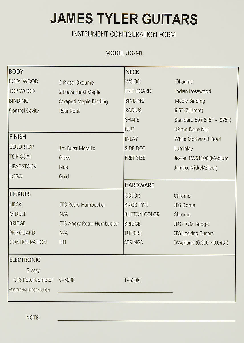 Wildwoodians, we love James Tyler guitars the way the lead singer of Australian duo Savage Garden loves the object of his affection: truly, madly, and deeply. That's why we're so excited about their freshest venture, JTG! JTGs are their new line of crafted-in-China guitars, and they capture the spirit of what makes a Tyler great at a very player-friendly price point. Though nothing compares to the peerless precision engineering and flawless tone of an American-made Tyler, the JTGs are scary guitars in their own right with their delectable tone, buttery playability, and eye-catching finishes that will make every guitar picker on your block green with jealous rage. This M1 in particular is a dual-humbucker vehicle for musical madness! A Tale of Two Humbuckers