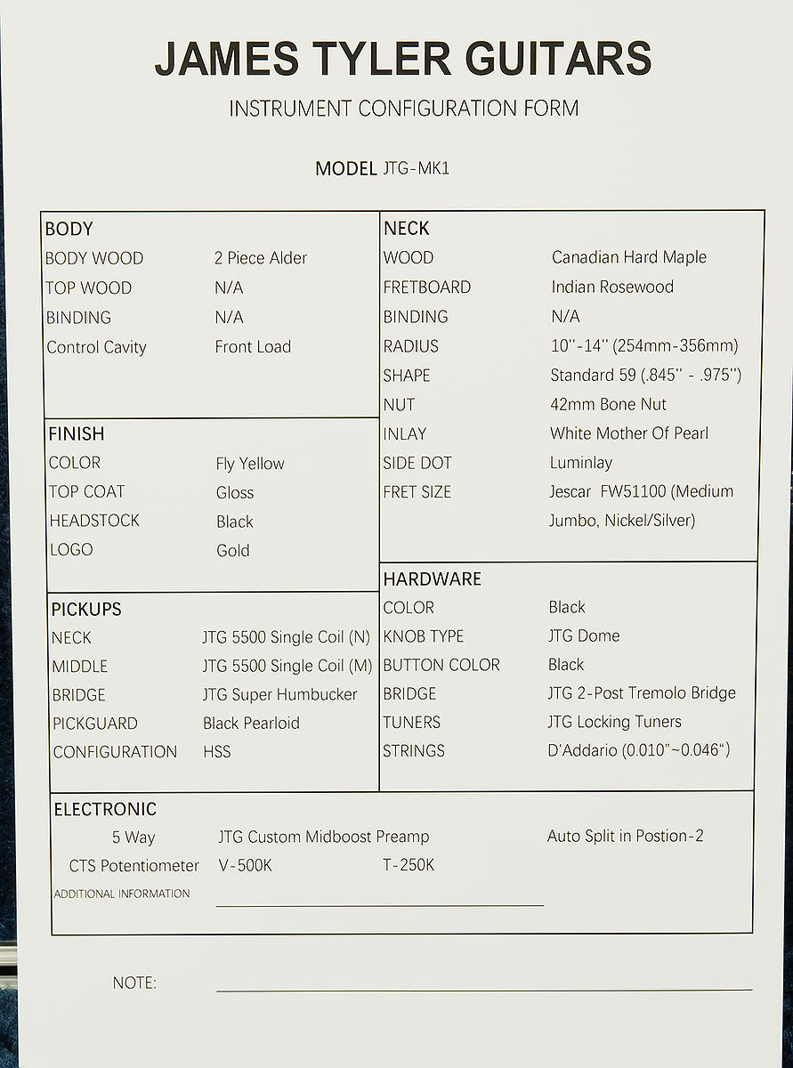 Wildwoodians, we love James Tyler guitars the way the lead singer of Australian duo Savage Garden loves the object of his affection: truly, madly, and deeply. That's why we're so excited about their freshest venture, JTG! JTGs are their new line of crafted-in-China guitars, and they capture the spirit of what makes a Tyler great at a very player-friendly price point. Though nothing compares to the peerless precision engineering and flawless tone of an American-made Tyler, the JTGs are scary guitars in their own right with their delectable tone, buttery playability, and eye-catching finishes that will make every guitar picker on your block green with jealous rage. This MK1 model in particular is a delightfully versatile HSS guitar!