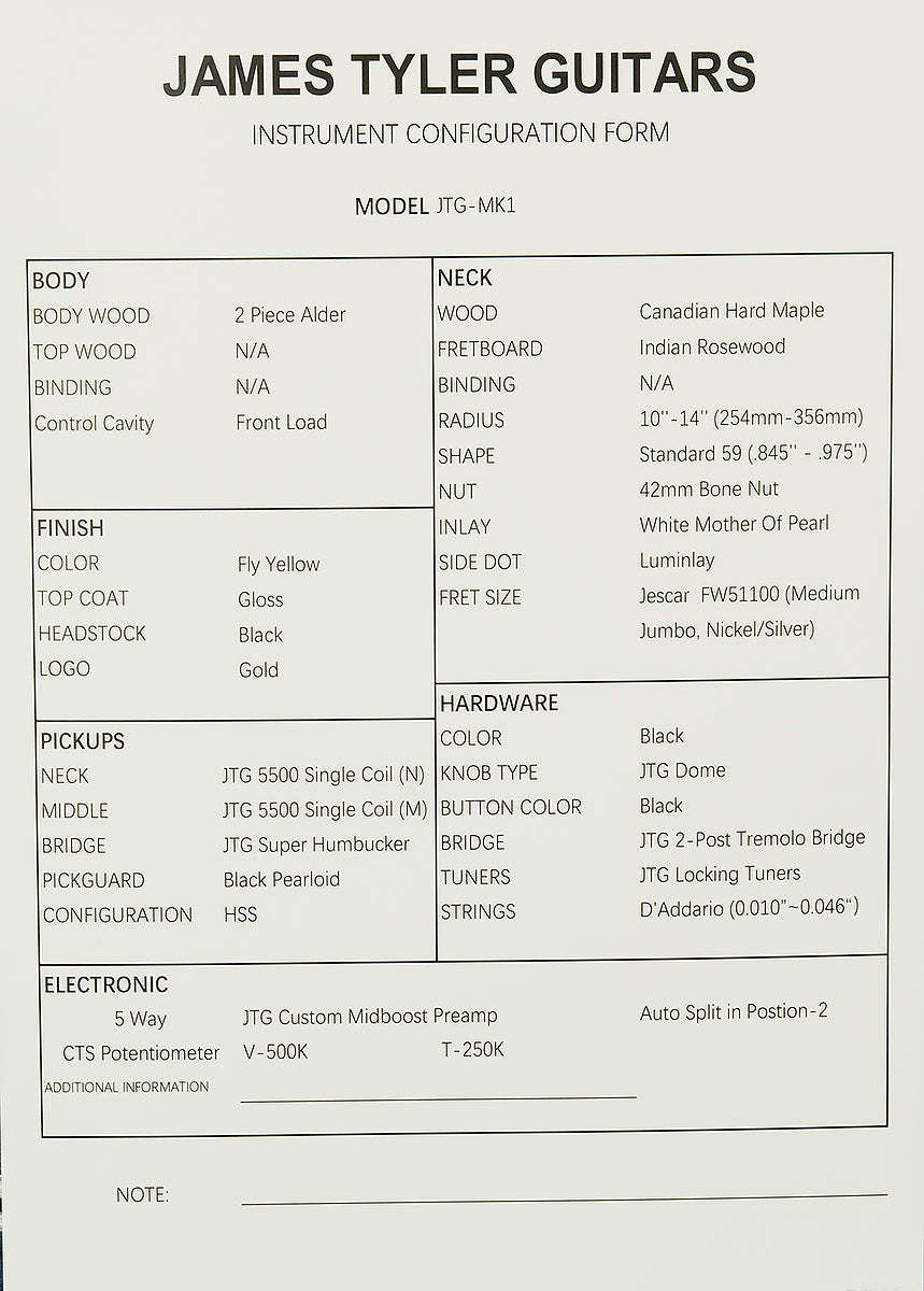 Wildwoodians, we love James Tyler guitars the way the lead singer of Australian duo Savage Garden loves the object of his affection: truly, madly, and deeply. That's why we're so excited about their freshest venture, JTG! JTGs are their new line of crafted-in-China guitars, and they capture the spirit of what makes a Tyler great at a very player-friendly price point. Though nothing compares to the peerless precision engineering and flawless tone of an American-made Tyler, the JTGs are scary guitars in their own right with their delectable tone, buttery playability, and eye-catching finishes that will make every guitar picker on your block green with jealous rage. This MK1 model in particular is a delightfully versatile HSS guitar!