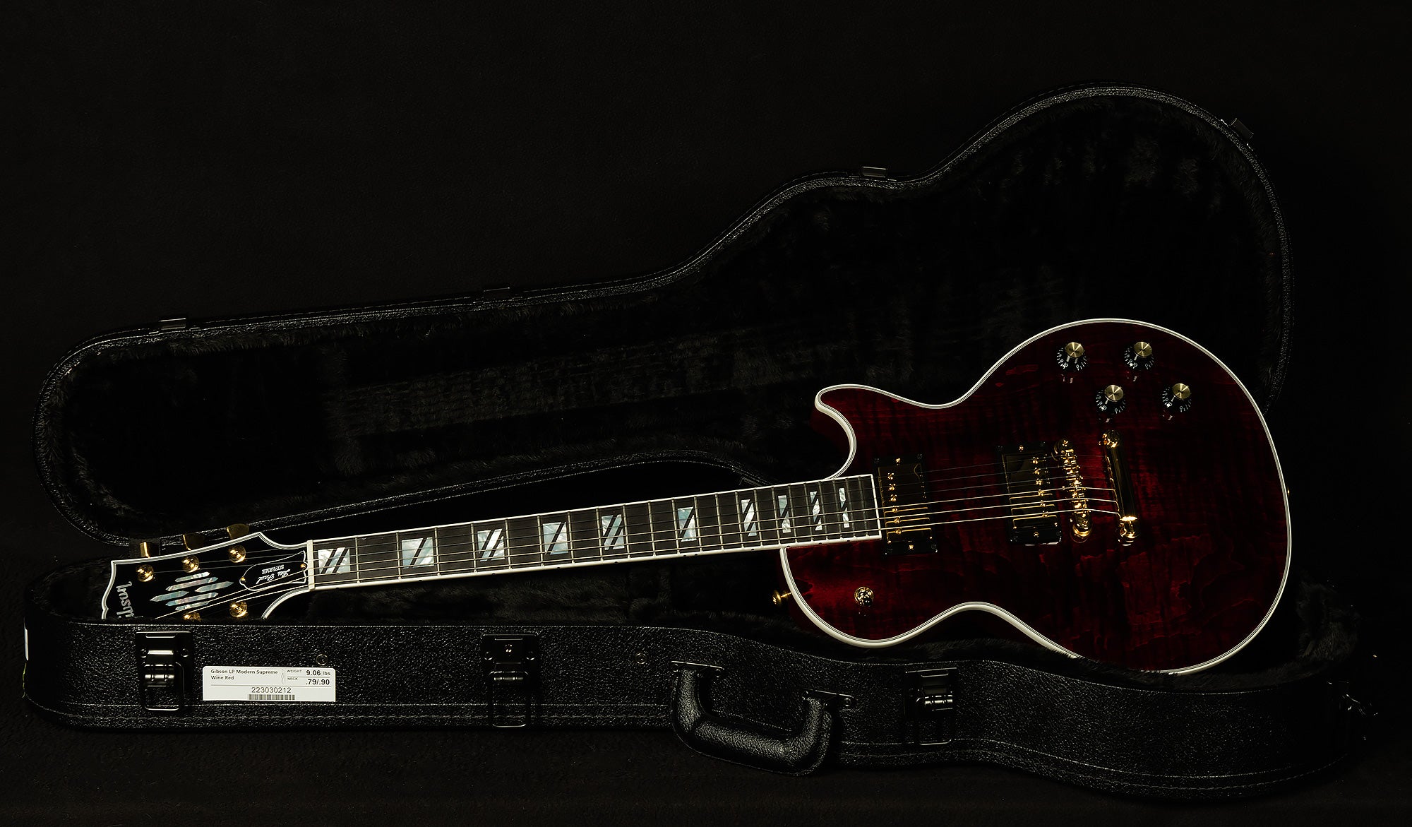 Gibson is excited to announce the return of the Les Paul Supreme. With a refreshed feature set, it is bound to overshadow everything else in sight and be one of the most exciting new releases of the year. It features a beautiful AAA-figured maple top on a mahogany body with Ultra-Modern Weight Relief. The mahogany neck has an ebony fretboard with a compound radius and Super Split Block mother-of-pearl inlays. The neck has a Modern Contoured Heel for exceptional upper fret access, and the headstock is adorned with a striking new mother-of-pearl inlay inspired by a design from the 1940s that was discovered in the Gibson archives. The Burstbucker Pro and Burstbucker Pro + pickups are paired with push/pull Volume and Tone potentiometers for flexible coil tap, phase, and Pure Bypass switching. The three gorgeous finishes are elegantly highlighted with gold hardware, making this not only a great-sounding and highly flexible instrument but also an exceptionally beautiful-looking modern rock machine. A hardshell case is also included.