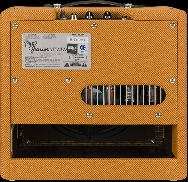 First things first: the volume knob on the Fender Pro Junior goes to twelve, and that is inarguably cool, because it is more than ten AND eleven-take that, Spinal Tap! However, it has much more to offer than a reference to Christopher Guest's mock-rockumentary-it has a profoundly powerful voice thanks to its re-imagined circuitry and its simple, clean signal path. It has two 12ax7 preamp tubes and two EL84s in the power section, and it has a volume and tone knob for control. It's remarkably touch-sensitive, and it is voiced to maintain tight low-end, excellent clarity, and that signature Fender chime and sparkle in the high-end even when you turn the volume all the way up. If you're looking for a workhorse amp with a heaping helping of attitude that will handle rock, blues, country, and everything in-between, you'll want to take the Pro Junior all the way up to 12. Specifications: Output Power / Output: 15 Watts Controls: Volume, Tone Amp Type: Tube Preamp Tubes: 2 x 12AX7 Power Tubes: 2 x EL84 Speaker: One - 10" Jensen® P10R Unique Features: Modified volume circuit breaks up more gradually, with tighter bass and improved definition when overdriven, vintage-style '50s grille cloth, chrome control panel with red jewel light and a leather handle Weight: 20.00 LB Model: 2231300000