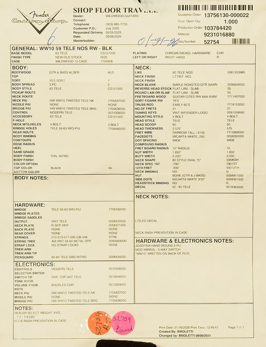 Each of these Custom Shop creations features a thin fifties-style nitrocellulose finish, which allows the voice of the resonant hand-selected tonewoods to shine through. They also have hand-wound Custom Shop pickups that are sure to inspire you to reach new heights on your sonic journey. Wildwood 10s feel great in your hands, too. Their modern 10" radius is suitable for a wide variety of styles and techniques, and their 6105 narrow-tall frets allow you to expend less energy with your left hand, especially when bending strings. To top it all off, they come with a limited edition Dealer Select Wildwood 10 hardshell case and a certificate of authenticity.