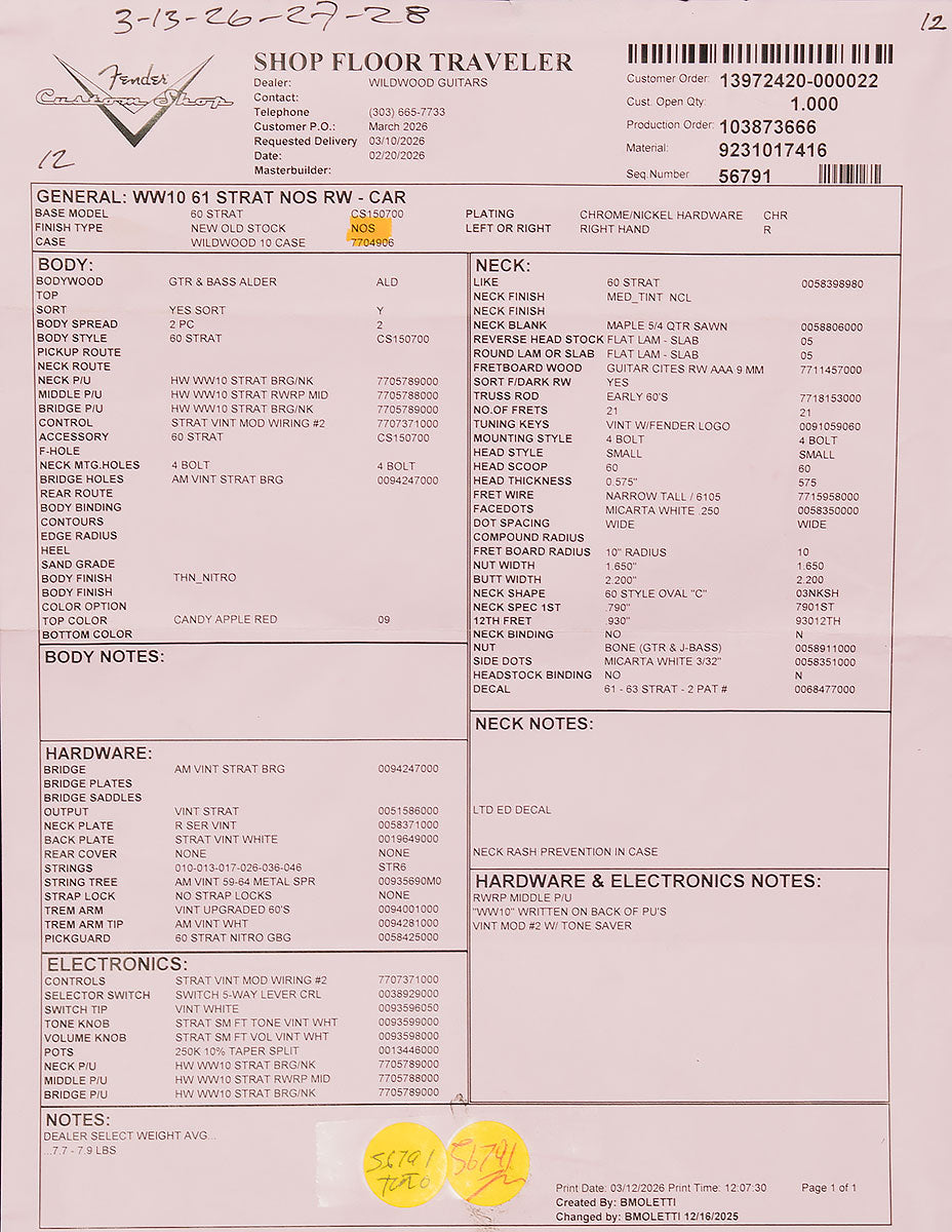 Years ago, we approached our friends at the Fender Custom Shop with a proposal: would they build us guitars that combined the mojo of a true-to-vintage reissue with modern handfeel and comfy modern ergonomics? They were enthused about the idea, and the Wildwood 10 was born. Thanks to the Custom Shop's incredible craftsmanship and artistry, these guitars look gorgeous, sound killer, and play like butter. Each of these Custom Shop creations features a thin fifties-style nitrocellulose finish, which allows the voice of the resonant hand-selected tonewoods to shine through. They also have hand-wound Custom Shop pickups that are sure to inspire you to reach new heights on your sonic journey. Wildwood 10s feel great in your hands, too. Their modern 10" radius is suitable for a wide variety of styles and techniques, and their 6105 narrow-tall frets allow you to expend less energy with your left hand, especially when bending strings. To top it all off, they come with a limited edition Dealer Select Wildwood 10 hardshell case and a certificate of authenticity.