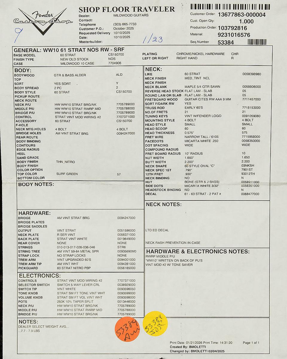 Dealer Select Wildwood 10 '61 Strat