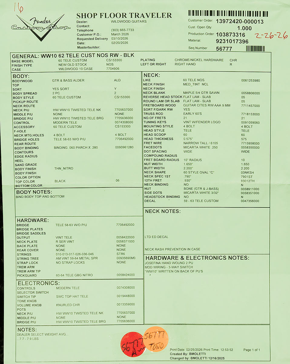 Each of these Custom Shop creations features a thin fifties-style nitrocellulose finish, which allows the voice of the resonant hand-selected tonewoods to shine through. They also have hand-wound Custom Shop pickups that are sure to inspire you to reach new heights on your sonic journey. Wildwood 10s feel great in your hands, too. Their modern 10" radius is suitable for a wide variety of styles and techniques, and their 6105 narrow-tall frets allow you to expend less energy with your left hand, especially when bending strings. To top it all off, they come with a limited edition Dealer Select Wildwood 10 hardshell case and a certificate of authenticity.
