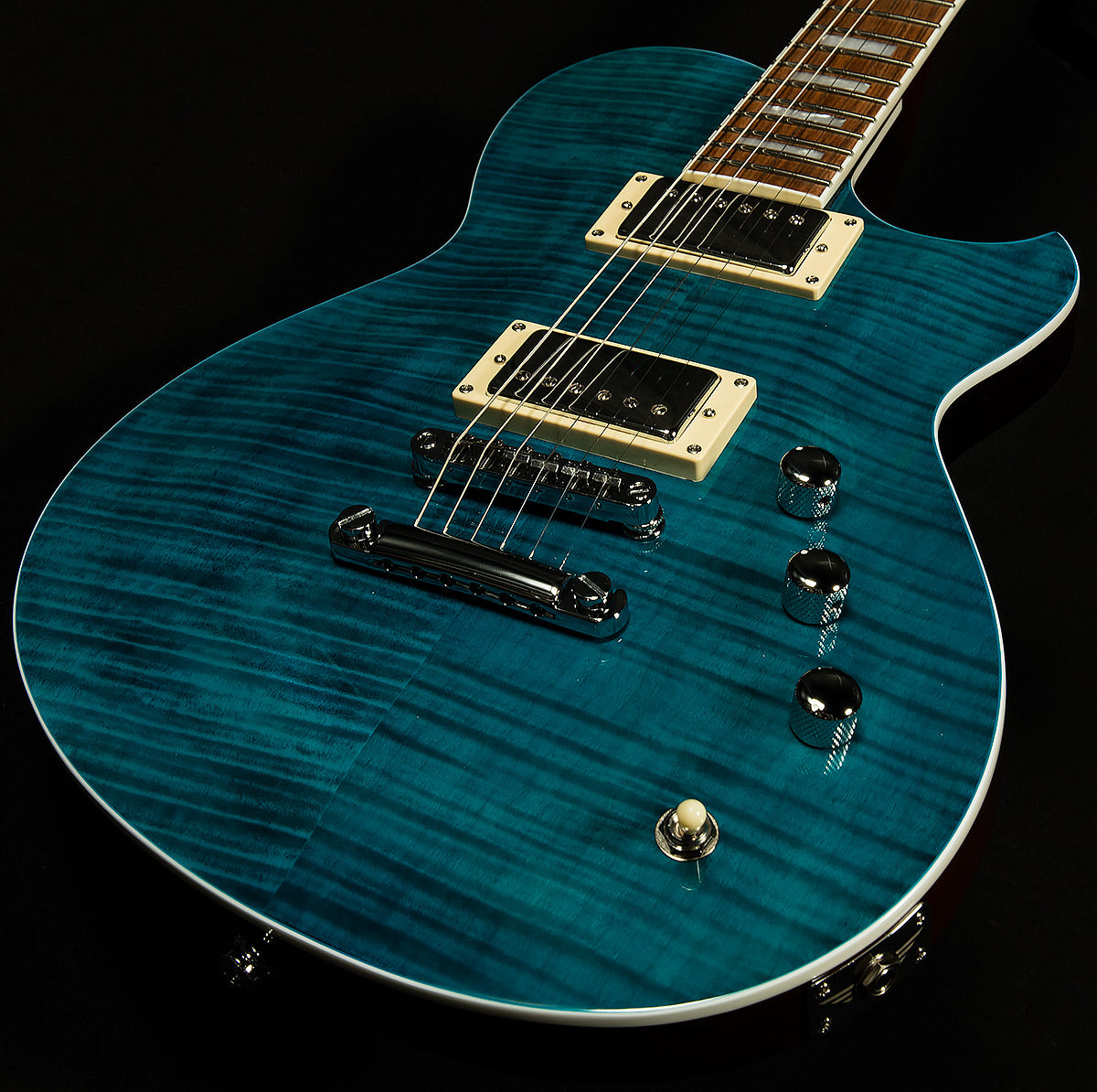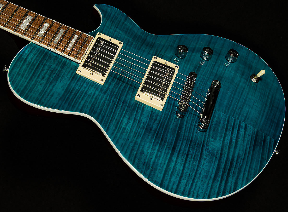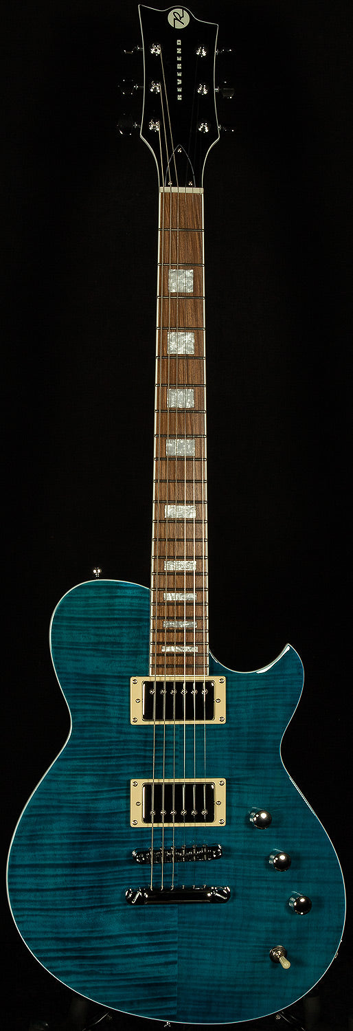 The Reverend Roundhouse has set Wildwood Guitars alight with excitement ever since its arrival, because we haven't seen a Reverend with a carved top in forever! With a transparent finish that highlights the stunning grain of the flamed maple top, this guitar is a stone-cold stunner in the looks department. It's also an absolute sonic titan, and it is incredibly versatile. Let's take a close look and see what makes the Roundhouse so inspiring! By matching the Roundhouse's korina body to the aforementioned maple top, the fine folks at Reverend have put a fresh spin on a classic tonewood combination. Korina shares many sonic characteristics with mahogany (it's warm, punchy, well-balanced, and even), but it's livelier and it has more overtone presence in the highs. Maple, on the other hand, tends to impart brightness, cut, and clarity when used for an electric guitar top. So, the Roundhouse sounds similar to the classic single-cut maple-topped guitars of yore, but with a bit of extra sparkle and a slightly sunnier attitude. Speaking of classic sounds, let's talk about the Reverend Alnico 5 humbucker sitting atop that lovely cut of maple. They nail the two iconic archetypical single-cut sounds. With the bass contour on full, they nail the big, rich, thick sound that was a hallmark of many jean-jacketed seventies rockers and blues masters like Clapton while maintaining modern articulation and clarity. When you roll off the bass contour, you get the "Tele-On-Steroids" sound that guys like Jimmy Page favored: woody, snappy, and articulate, but with plenty of mass and depth. With these two spectacular tones at your disposal, you can easily shape your sound to suit a wide variety of musical situations! Power to the Player
