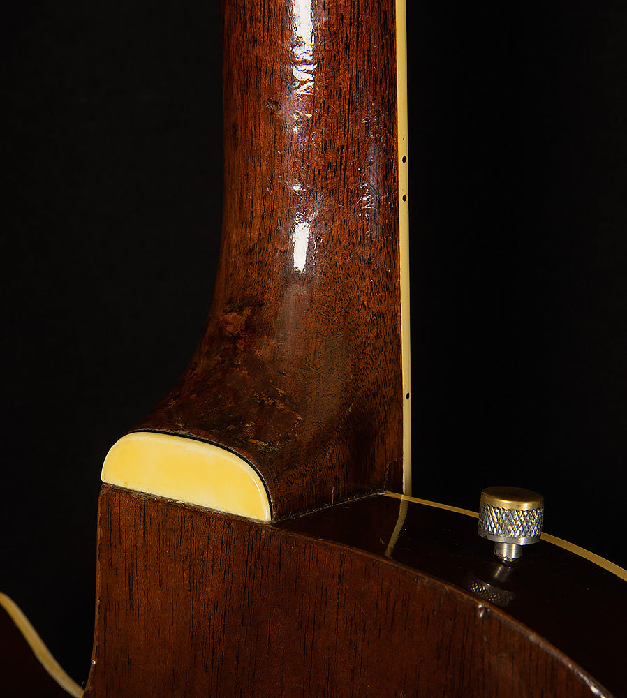 This 1954 Duo Jet has some light overspray on the back of the neck and by the bridge. It is likely that a previous owner had the neck oversprayed to prevent it from receiving any more play wear. The overspray on the top was... Read More...