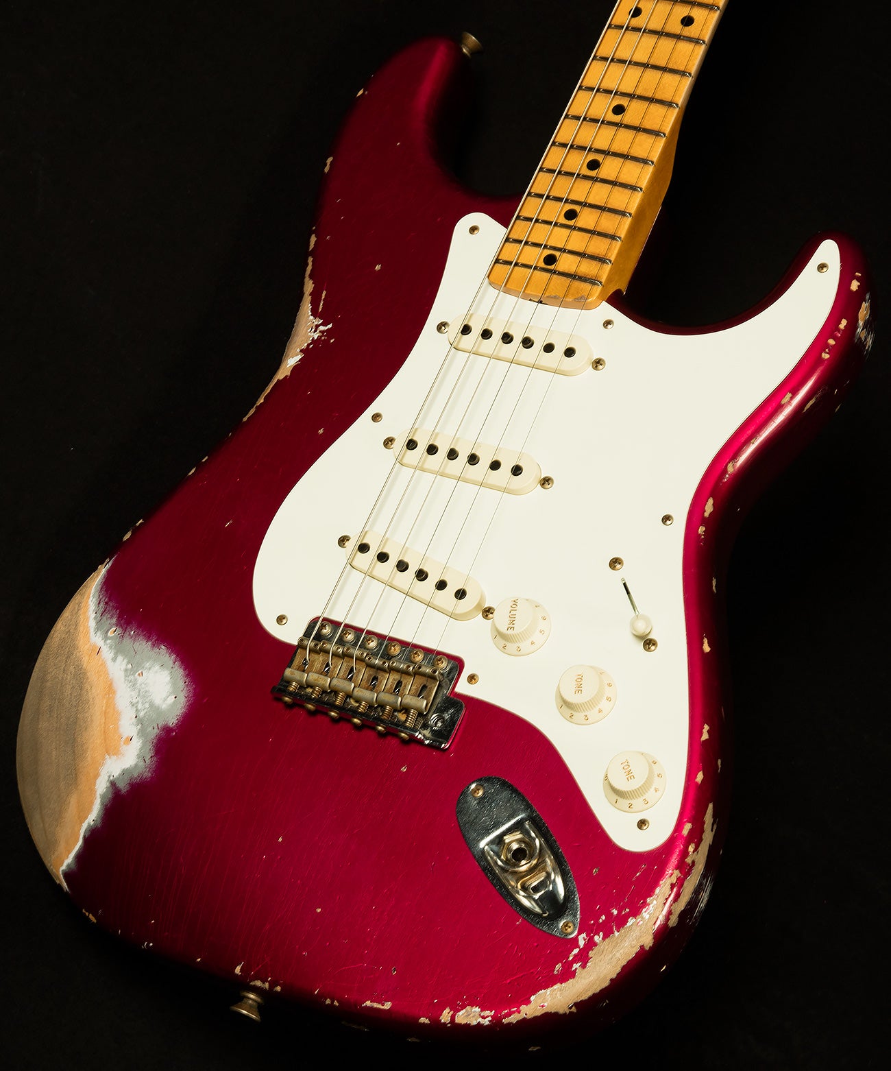 Nineteen fifty-seven was a banner year for the Fender Stratocaster. Though the Stratocaster became a runaway hit after hitmakers like Buddy Holly toted them on stage, Leo Fender's tireless commitment to excellence led him to introduce a number of improvements to the Stratocaster's design. In a quest to cater to players' demands, he introduced a soft V-shaped neck profile, and he started building some of the bodies out of alder. Our Wildwood 10 1957 Stratocasters pay homage to Leo Fender's relentless work ethic by replicating the glories of the original heavenly '57s. We have a wide variety of finishes with various types of relic-ing and lots of neck profiles, so we're sure you'll be able to find a '57 that speaks to you. We invite you to browse our selection and experience the myriad delights the Wildwood 10 1957 Stratocaster has to offer.