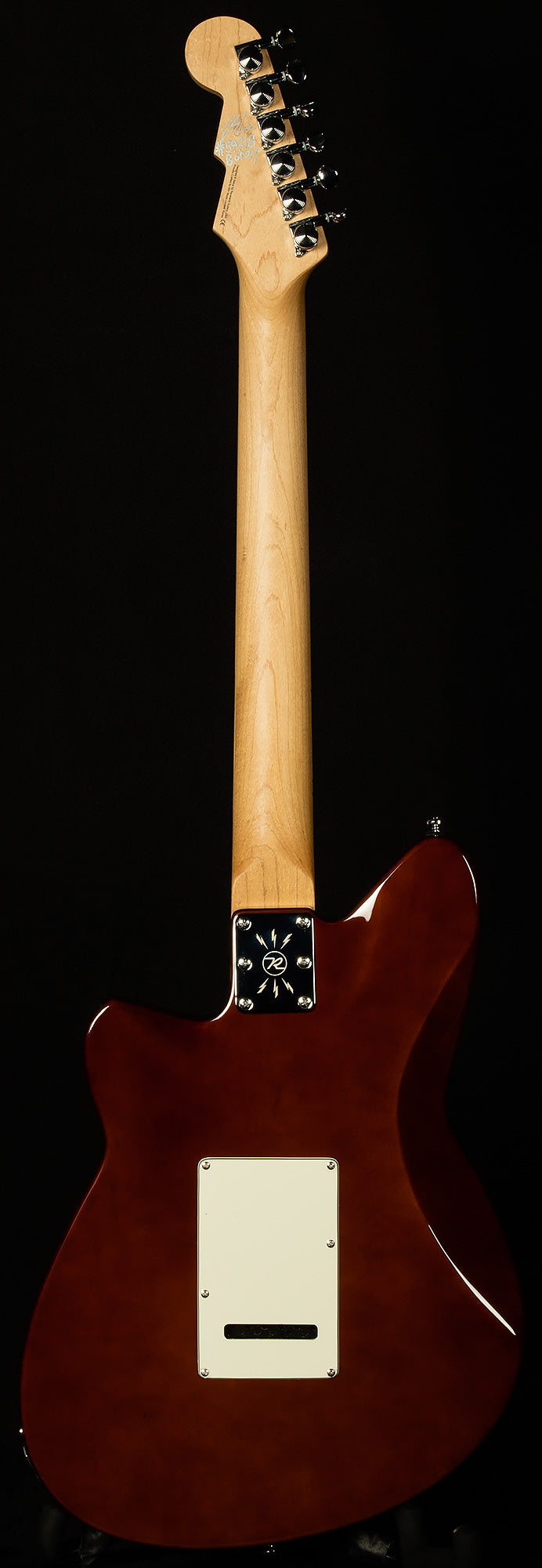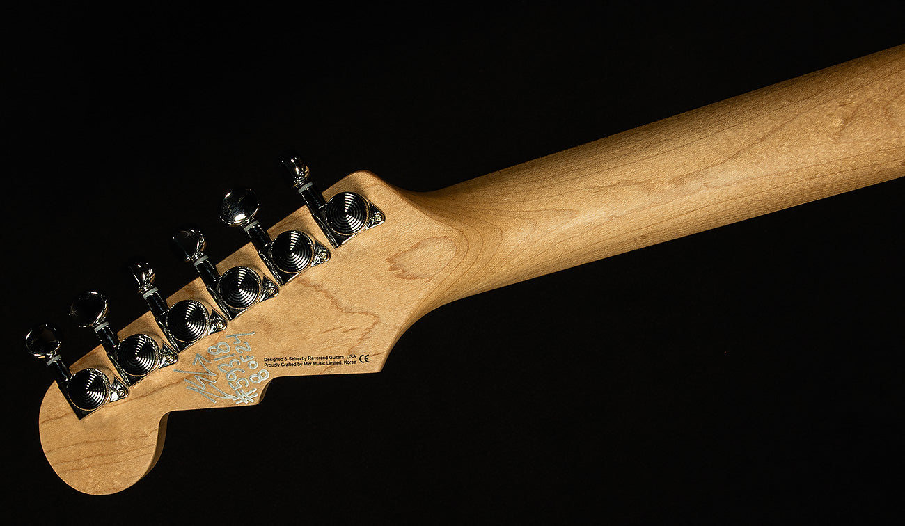 A new Reverend Double Agent--codenamed "W"--is here, and it is on a critical mission to deliver monster tone and superb playability to an undisclosed location behind enemy lines. Though Double Agent W may have a cryptic one-letter name, it provides a remarkably inviting playing experience thanks to a host of player-friendly appointments and a stellar combination of pickups. The resonant korina body provides a warm, balanced, harmonically lively basic tone, and the roasted maple neck provides a little bit of extra clarity and focus. With an excellent basic tone established by the tonewoods, the HA5 humbucker in the bridge position and 9A5 P-90 in the neck position provide players with a thick dossier of classic tones. Reverend's world-famous bass contour knob really works its magic here, and it allows you to cop so many awesome sounds, it'd make James Bond weak in the knees! Fat, punchy humbucker tone? See the file for the bridge position. Warm, woody twang with upper-midrange quack and cutting trebles? Just make sure you're not being followed and flip to the neck position after rolling off the bass contour. Muscular, sculpted low-end with lots of high-end sparkle? Just make your way to the middle position! The list could go on and on, but we mustn't discuss it here--the walls have ears! Facetiousness aside, Reverend has provided lucky guitar players with yet another deceptively simple guitar that can cover an incredibly wide swathe of stylistic ground with only simple control! It also plays like a dream, too, thanks to its delightful medium oval neck profile and 0.110" wide x 0.050" high frets. A good spy is reliable, too, so Double Agent W comes equipped with high-quality components like a Pure Tone jack, boutique-quality capacitors and pots, and a treble bleed circuit. A six-bolt neck plate for better resonance and an angled neck heel for better ergonomics complete the package. Well, there you have it, Wildwoodians! Double Agent W is at your service. Your mission, should you choose to accept it, is to plug in and melt faces until you reach rock and roll Valhalla. Good luck, and godspeed.