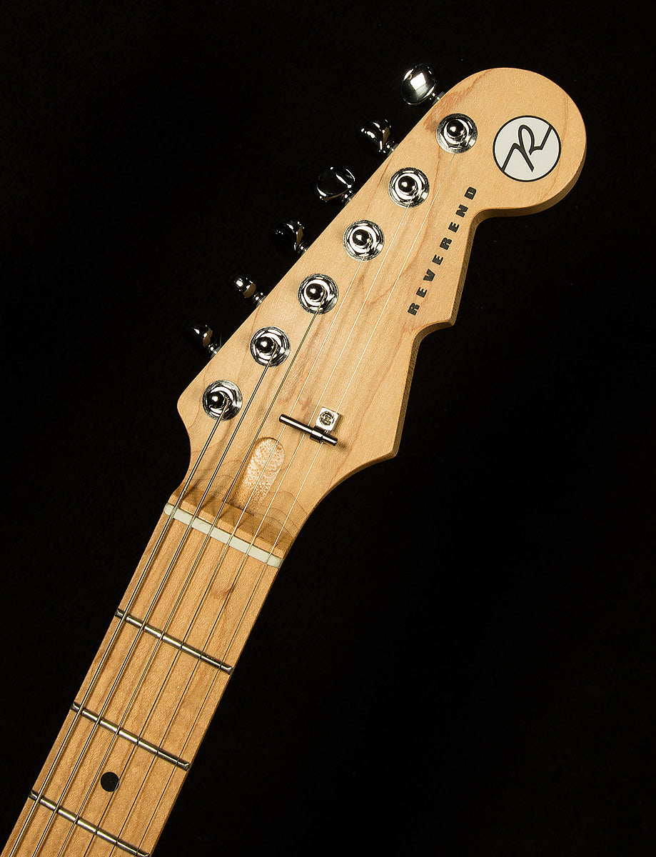 A new Reverend Double Agent--codenamed "W"--is here, and it is on a critical mission to deliver monster tone and superb playability to an undisclosed location behind enemy lines. Though Double Agent W may have a cryptic one-letter name, it provides a remarkably inviting playing experience thanks to a host of player-friendly appointments and a stellar combination of pickups. The resonant korina body provides a warm, balanced, harmonically lively basic tone, and the roasted maple neck provides a little bit of extra clarity and focus. With an excellent basic tone established by the tonewoods, the HA5 humbucker in the bridge position and 9A5 P-90 in the neck position provide players with a thick dossier of classic tones. Reverend's world-famous bass contour knob really works its magic here, and it allows you to cop so many awesome sounds, it'd make James Bond weak in the knees! Fat, punchy humbucker tone? See the file for the bridge position. Warm, woody twang with upper-midrange quack and cutting trebles? Just make sure you're not being followed and flip to the neck position after rolling off the bass contour. Muscular, sculpted low-end with lots of high-end sparkle? Just make your way to the middle position! The list could go on and on, but we mustn't discuss it here--the walls have ears! Facetiousness aside, Reverend has provided lucky guitar players with yet another deceptively simple guitar that can cover an incredibly wide swathe of stylistic ground with only simple control! It also plays like a dream, too, thanks to its delightful medium oval neck profile and 0.110" wide x 0.050" high frets. A good spy is reliable, too, so Double Agent W comes equipped with high-quality components like a Pure Tone jack, boutique-quality capacitors and pots, and a treble bleed circuit. A six-bolt neck plate for better resonance and an angled neck heel for better ergonomics complete the package. Well, there you have it, Wildwoodians! Double Agent W is at your service. Your mission, should you choose to accept it, is to plug in and melt faces until you reach rock and roll Valhalla. Good luck, and godspeed.