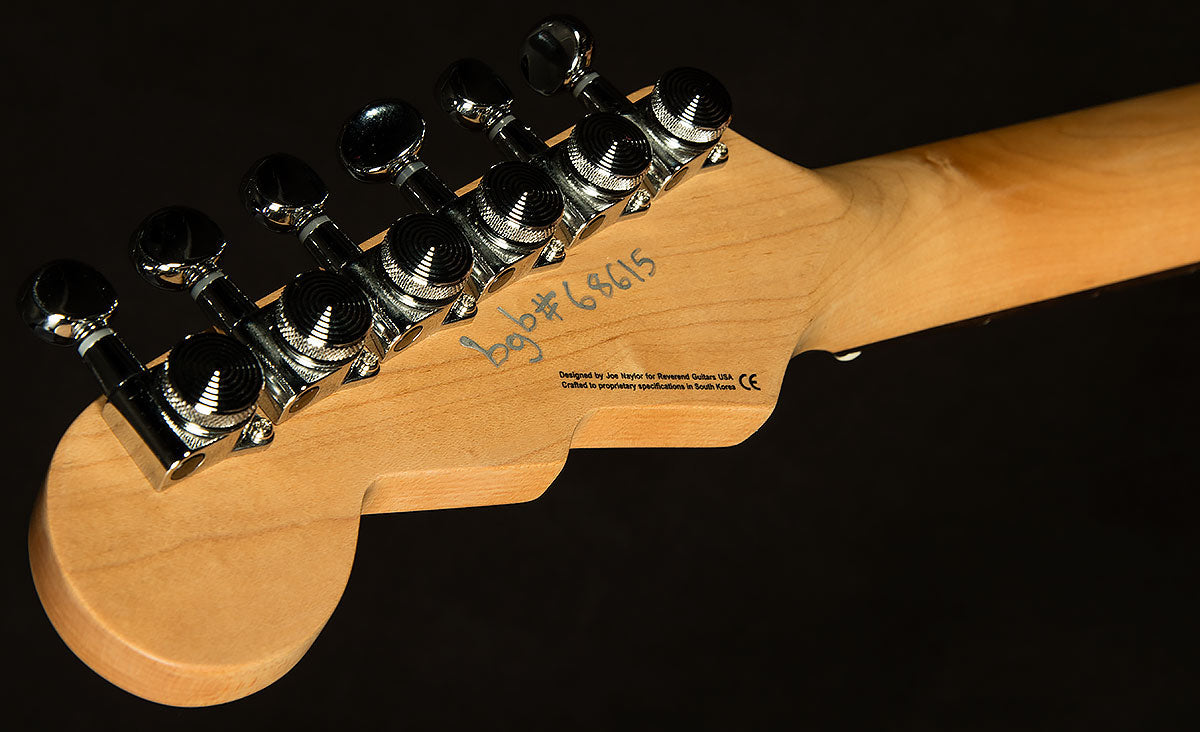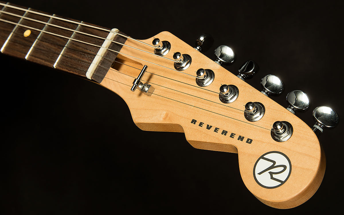 Before starting Reverend Guitars, Joe Naylor (the brains behind Reverend designs) worked as a guitar repairman. Over the years, he kept a mental checklist of all the most common guitar ailments and afflictions. Once he started building, he sought to improve his designs to head these issues off at the pass with thoughtful designs meant to improve durability, stability, and playability. For instance, input jacks always go squirrelly, so each Reverend has a four-bolt jack plate instead of a two-bolt, because more bolts means it's less likely to move. The same principle applies to many aspects of this guitar's design. It has a six-bolt neck plate instead of the usual four, so the neck is much less likely to move. It's also at a slight angle, which makes it easier to access the upper frets. Speaking of which, the neck is made of roasted maple, which has a lower moisture content, so it's less likely to move with humidity (and it acts as a wooden tuning fork of sorts, boosting the guitar's sustain and resonance a little bit). For those who love to whammy it up, it has a Wilkinson WVS50 IIK Tremolo, which is as bulletproof and stable as they come. Speaking of tuning stability, the Boneite nut and pin-lock tuners make tuning (and staying in tune) a breeze. To top it off, it has boutique-quality pots and caps, which ensure each guitar has reliable, consistent electronic components. Basically, all of that makes each Reverend supremely reliable, capable of withstanding abuse night in and night out. Reverend's playability matches the sky-high standards it sets in durability and stability. Their necks are a marvel: an uber-comfy medium oval C with a 12" radius and 0.110" wide x 0.050" high frets create a comfortable home for just about any play-style. The flat radius allows for a lower setup and lets you bend strings with low action without the notes choking out and dying. The larger frets also reduce left-hand exertion and make it easier to play precisely, and the overall profile sits squarely in the Goldilocks Zone: not too thick and not too thin. It's a configuration that works well for just about any play style, and it is universally beloved by the Wildwood staff. That's all a long-winded way of saying that this Reverend will be a dependable and helpful companion throughout all your fretboard adventures, making it easier for you to express yourself creatively at every turn. Rocky Mountain Spy
