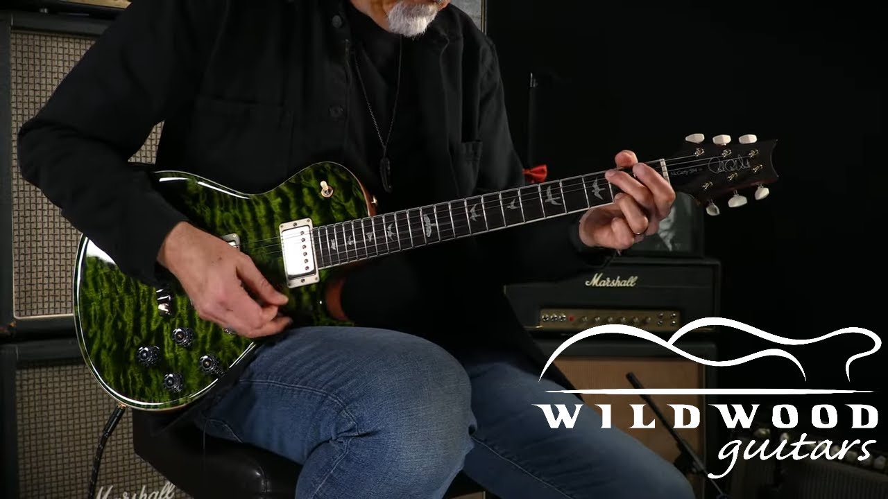 In the 1980s, Paul Reed Smith's obsession with golden-era vintage guitars led him to the U.S. Patent Office, where he combed the records for clues about what made those old guitars so inspiring. One name kept popping up over and over on these old patents: Ted McCarty. Paul did a bit more digging and found that Ted McCarty was Gibson's president from 1950 to 1966. During that time, he used his considerable engineering experience to help develop dozens of innovative designs that shaped the electric guitar into what it is today. Over the course of the McCarty era, Gibson went from selling 5,000 instruments a year to 100,000 a year. Ted clearly knew a thing or two about building guitars and about running a guitar company. So, Paul decided to reach out to Ted and ask for an interview so he could pick his brain a little. Ted obliged him, and that interview blossomed into a decades-long friendship. They became such good buddies that Paul decided to honor Ted by designing a guitar using all of the tips and techniques he'd gleaned from their conversations. Naturally, he named the guitar after his friend. The PRS McCarty had arrived. Ever since its birth in 1994, the McCarty model has inspired countless players with its blend of vintage tone and modern playability. It's also a fitting tribute to Ted McCarty and his friendship with Paul Reed Smith. Throughout the years, Paul's tireless drive to innovate has produced several delectable additions to the McCarty line: the McCarty 594, the McCarty SC 594, and the McCarty 594 Hollowbody II. After all, you can't rest on your laurels when you've named a guitar after one of the greatest six-string innovators ever to live! We believe that each model combines the best qualities of old and new in one art museum-worthy package. Wildwood Guitars is proud to showcase the fruit of Paul and Ted's excellent adventure: the PRS McCarty. The McCarty's excellence is a testament to the powers of collaboration and friendship. It's proof that when two brilliant people who enjoy one another's company roll up their sleeves and get to work, magnificent things happen. We invite you to browse our selection of PRS McCartys and find one that inspires you to reach new heights on your fretboard journey. Be forewarned: once you take one for a spin, you'll be hooked for a long, long time.
