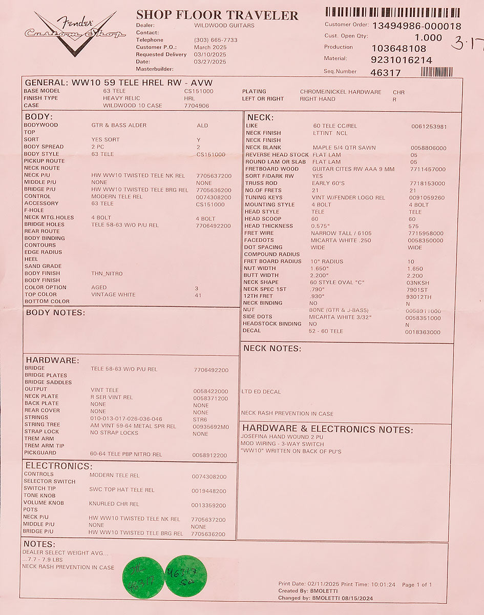 2025 Dealer Select Wildwood 10 '59 Telecaster